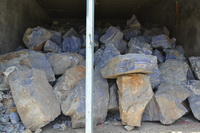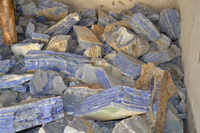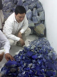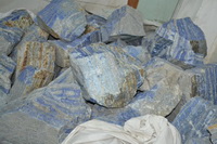 一个小时后,我们到了青金的储藏室,一个面积三百平方的老式仓库,一共放了六大堆,基本就是6个级别,每堆一百吨,保管员已接到电话,提前准备了浇水壶,我们细看了六个批次的原石,好的比例越来越少了。粗略估计大约好的有5%,我们决定把这5%的好料先挑出来。在斋月白天不吃不喝要翻动这六百吨石头,本身就不是一件容易的事,并且要求在一周内分拣完毕,要赶在矿山下来这一批矿石前干完,到时一起办理工矿部和海关手续。