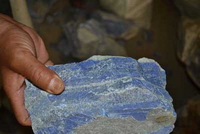 早上分两拨开始进山。昨天我们后面一台车上的人在矿山负责人的带领下变成先行,我们后跟上,这时我们车上是三个人了,一个人在前面车上便于前面联系。到达矿山下最后一个小镇,我们集中看了近二十家青金,这都是近阶段从矿山下来的、除了我们自己矿口的,还要挑出来属于别人的青金里面和我们标准相同的,尚需要一柜才能够国内分配。半天下来,很失望,就算组织更多的人马,像在喀布尔仓库那样挑,估计二十家也很难挑够,大多都是普通的原料,厚重的大蓝料从矿山上下来的越来越