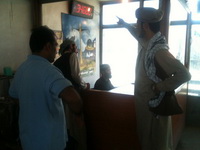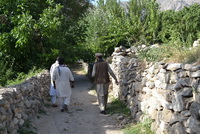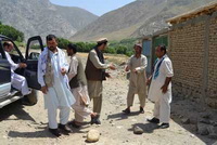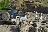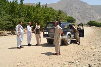 当我们到达一个有六家开采队集中存放的大院子时,长老和矿山伙伴说,慢慢看,慢慢挑,不去矿口了。我们知道有情况。在僻静的地方,他告诉我前面的山坳已经驳火,哨所两个军警被打死,政府军很快会到。我们接着在楼上的房间看到政府军的三台美国战车呼啸而过,机枪口对着周围道路,十分警惕。晚上传来消息,一个军警在医院抢救,有脱离危险的迹象。当天下午的战斗参加人数五十多个。一个本身就是“塔利班”联络员的村民告诉我们,这里盘具有六十多个“塔利班”,并且打开手机让我们一一看这些人的照片。他们只收过路费,维持战斗开销,战斗的对象是军警,对我们不构成威胁。其实我们知道,对外国人甚至他们本国的外地人都有可能采取非常规措施,而且也发生多起,解决起来耗时耗力。我们觉得还是周密部署,确保在内部人员照应下,不发生状况为妙。(
