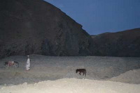 在越来越亮的路上,经过了无数大小检查站和岗楼,一段修路的路段占用我们一个多小时,只是有大量的修路工人让我们感到可以放松一下精神。在“昆都土”等另一辆车,车上有明天我们一块赶路的同行者,他们会带来明天要用到的一些器械,由于很多不确定因素,我们多等了一个多小时的时间才等到他们。前面的“塔哈尔”使我们都有些紧张,2007年就是在这个城市,天还没有完全黑,我们就被马帮追赶,差点成了俘虏,留下了几个弹孔的越野车陪了我们三年才出手卖掉。