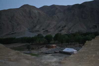 按矿山生产计划,我们明天早上出发上山。斋月宾馆夜里提供一餐,时间是凌晨两点。我是没有习惯睡意正酣被叫起来进食的习惯,但伙伴们下楼去餐厅吃饭,我也起床一块陪他们去餐厅.等到勉强看到天边的白光,我们收拾行囊上路。综合最近整个道路安全形势,我们决定两台车分开前行。我们车上四人,只有我是中国人,我穿上了伙伴带来的民族大衫大裤,看起来俨然是个阿富汗人了。说起来,大衫大裤夏天还真是够凉快的。