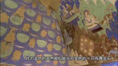 克孜尔石窟是中国现存的最古老的石窟,还被称为“蓝色的石窟”,使用了大量蓝色颜料的壁画,如此大量使用蓝色的石窟,可谓绝无仅有,蕴藏幽邃光辉的克孜尔的蓝色,蓝色的颜料是青金。在古代,只有阿富汗出产这种贵重的宝石,距今约5000年前,也传至埃及,镶嵌在图坦卡门的黄金面罩上,深受历代法老的喜爱,并通过丝绸之路传至中国和日本,被称作“琉璃”。自古,在绘画中想要表现蓝色是一件非常苦难的事情,直至19世纪,法国人让.巴蒂斯特.基梅发明人工群青,作为蓝色的天然颜料能永不变色,只有青金。