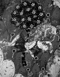 彼岸世界建立了某种内在联系的原因之一。即使在今天的藏传佛教艺术中,我们依然能够明显体会到青金 石的这种深在的宗教隐喻功能。