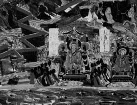 然而在唐代尤其是盛唐时期,青金对人视觉心理的“冷缩性”导 向以及对彼岸世界的宗教性隐喻,显然都是与当时激昂奋发的世俗精神 不合拍的。青金颜料在唐代敦煌艺术中的退隐,所折射出来的正是一 种世俗精神的胜利。
