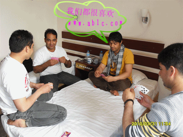 在居住的宾馆打扑克,娱乐友好的阿富汗朋友,坦诚,幽默